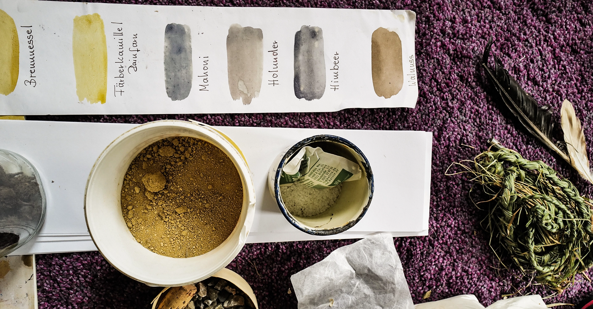Wir tauchen ein in das uralte Ritual des Malens mit Pflanzenfarben – aus Früchten, Blättern und Blüten fließen lebendige Säfte, teils im Feuer verwandelt zu magischen Tönen.